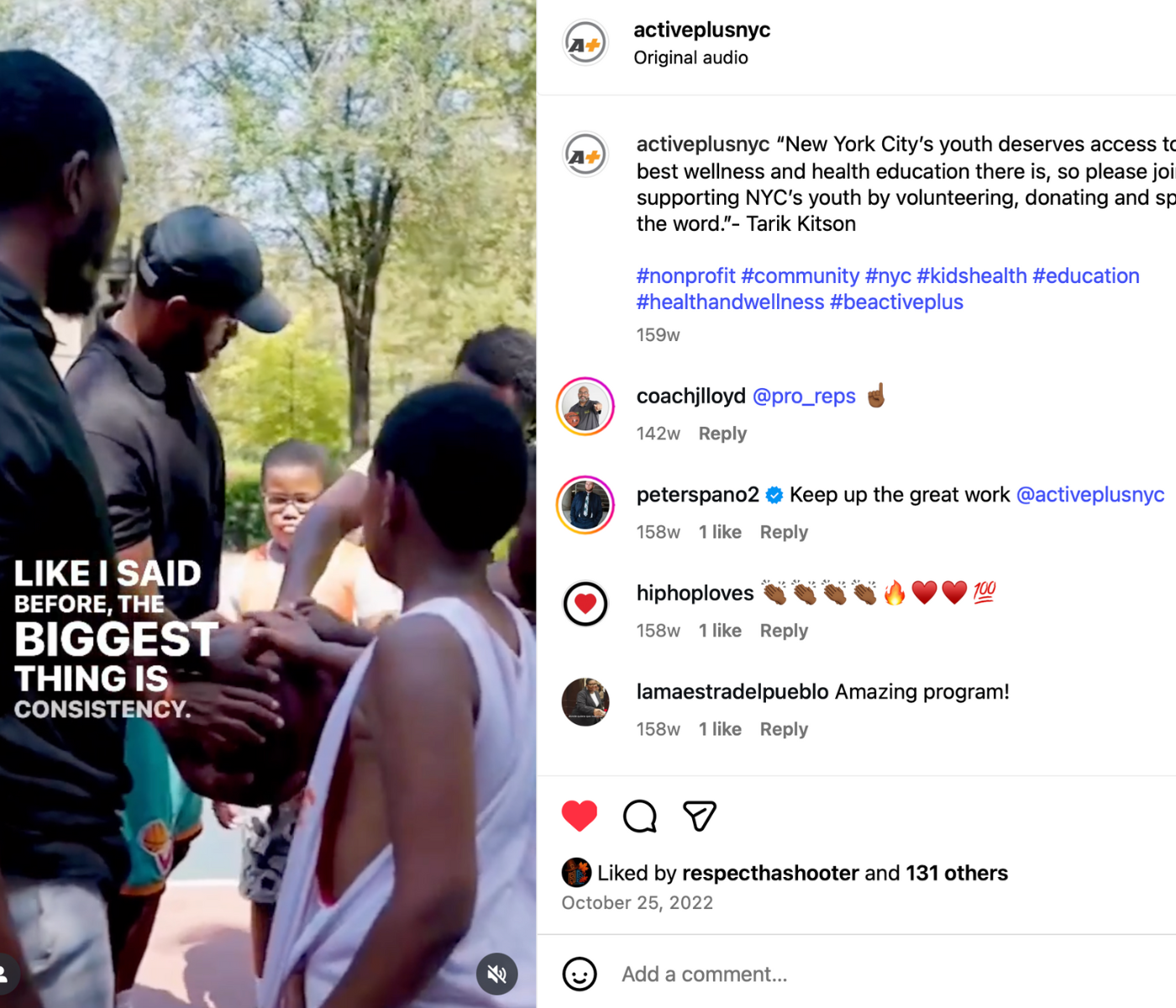 Active Plus, a New York City nonprofit promoting fitness, wellness, and personal growth for underserved youth, needed a stronger social media presence to fuel its growth. Although the organization was running impactful programs throughout the city’s school system, it wasn’t capturing or sharing its success online, missing valuable opportunities to showcase its impact to potential donors, schools, and partners. Although it was serving hundreds of students weekly, their Instagram account had fewer than 1,000 followers and minimal engagement. Their goal was to use social media to highlight program outcomes, attract donor interest, and expand their reach across NYC’s boroughs. They just needed the right partner to make it happen.